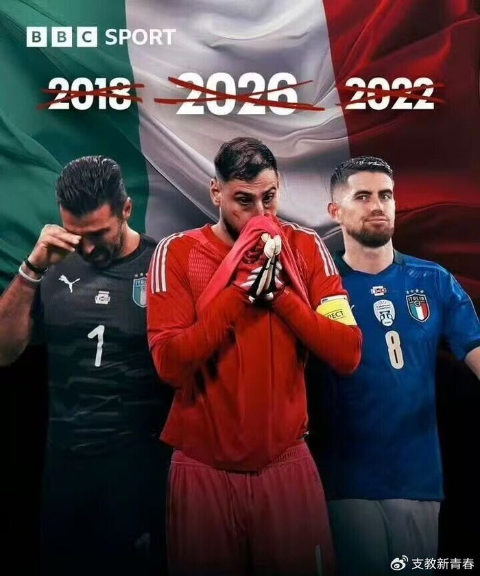 也就是无缘2018世界杯、2022世界杯、2026世界杯,意大利男足创造了“世界豪门”的历史性耻辱纪录。